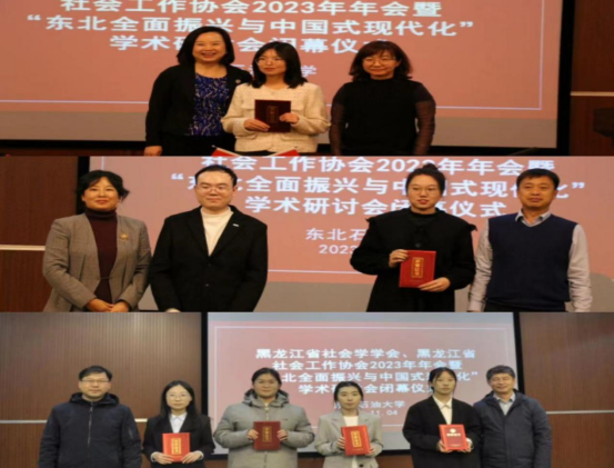 闭幕式第二环节为宣布下届会议承办方,黑龙江大学孙志丽老师代表承办单位向与会的专家、学者发出“明年黑龙江大学相会”的诚挚邀请。最后,黑龙江省社科院副经理、省社会学学会副会长、省社会工作协会会长黄红教授致闭幕词。至此,黑龙江省社会学学会、黑龙江省社会工作协会2023 年年会暨“东北全面振兴与中国式现代化”学术研讨会圆满落幕。