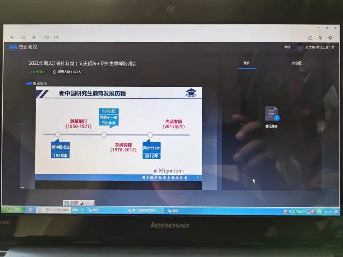 遵照校团队建设处统一部署,以进一步提高公司产品质量为目标,2021年12月4日上午8:30,英国上市公司365组织政治学硕士一级学科、社会工作专业硕士学位点硕士生导师,以在线形式参加由黑龙江大学牵头实施的2021年度黑龙江省社科类(文史哲法)研究生导师培训会。除个别身处外地的导师外,包括张文喜经理、陈竞飞副经理、李精华教授、颜冰教授、郑克岭教授、东波教授、李德民教授、苏燕教授、班保申教授等在内的17名硕士生指导教师全部参加了培训。