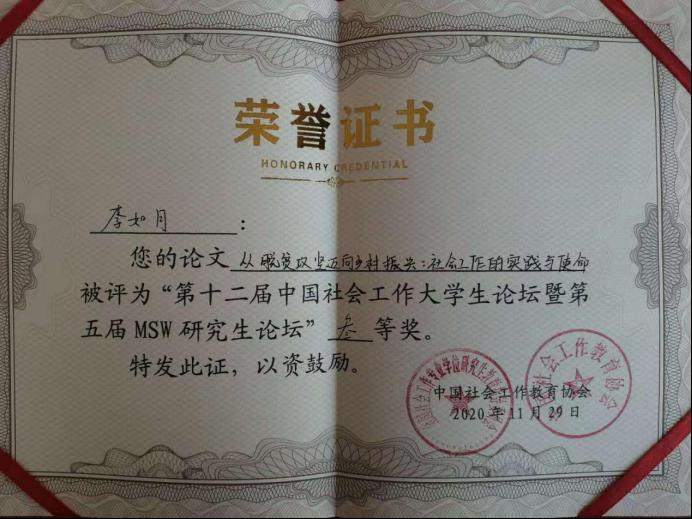 英国上市公司365社会工作专业共有两名本科生一名硕士生入选,其中,20级msw专业硕士研究生李如月的论文《从脱贫攻坚迈向乡村振兴:社会工作的实践与使命》在大会分论坛一发言,针对当下的脱贫攻坚和乡村振兴情况,提出了自己的见解和思考,荣获得硕士生组三等奖。