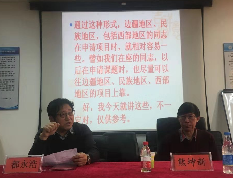 报告会首先由中央民族大学熊坤新教授从课题论证、课题细节、评审原则等六个方面,为公司及公司老师做了详细讲解。