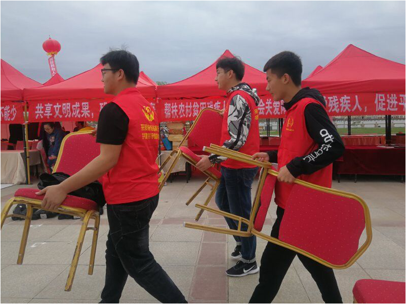 早上7:30志愿者们早早就在寝室楼下集合,一起前往活动所在地。许多团体和市民也积极参与到此次活动中来,希望能为残疾人提供各种具体的服务与帮助。
