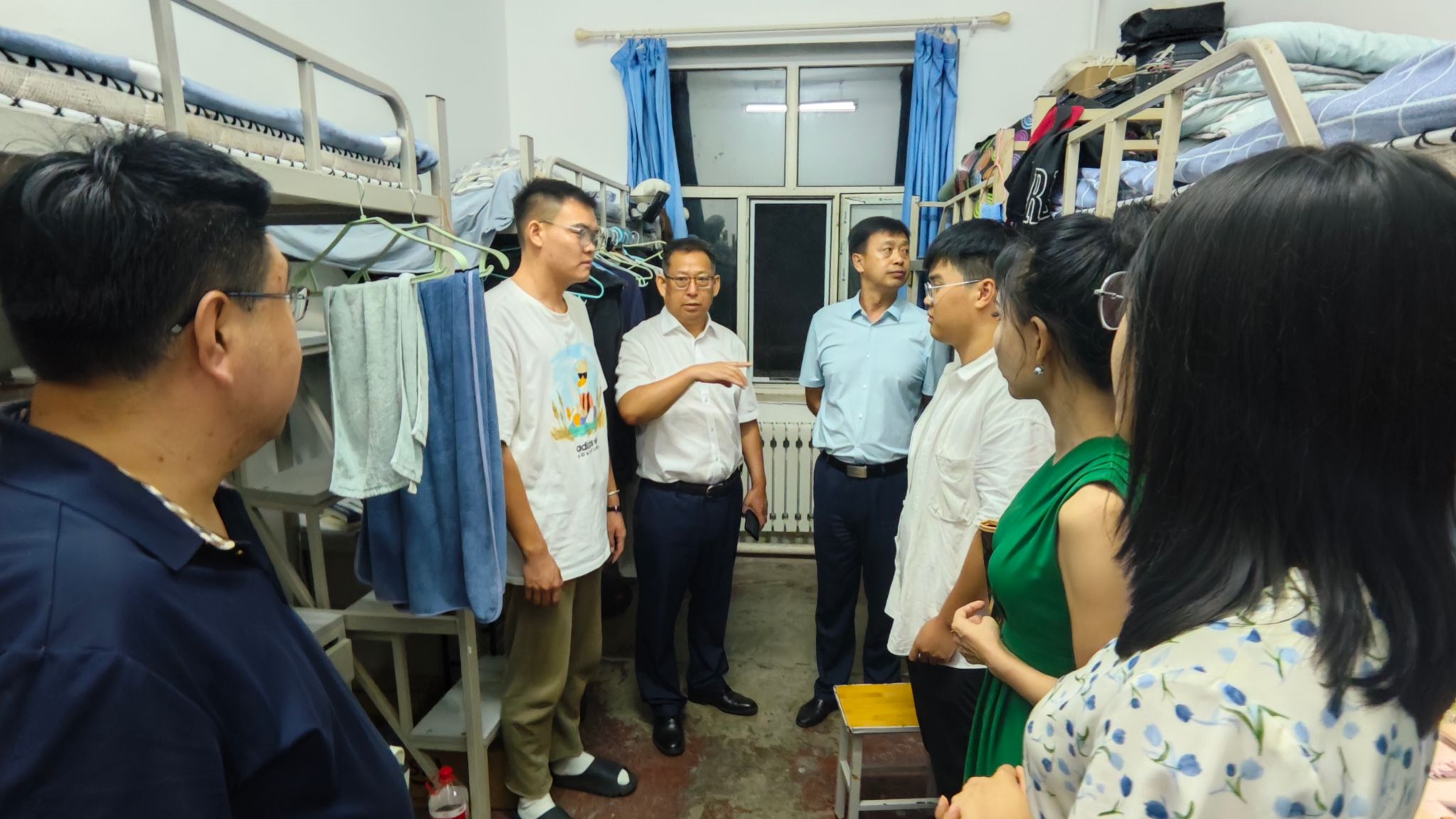 报到结束后,学院领导班子深入员工宿舍走访慰问。院领导与新生亲切交谈,细致询问住宿安置情况,关心生活需求,耐心解答问题。走访中,领导们叮嘱新生要尽快适应新环境,合理安排学习生活,注意人身财产安全,并鼓励大家珍惜研究生时光,互帮互助,共同营造温馨和谐的宿舍氛围。