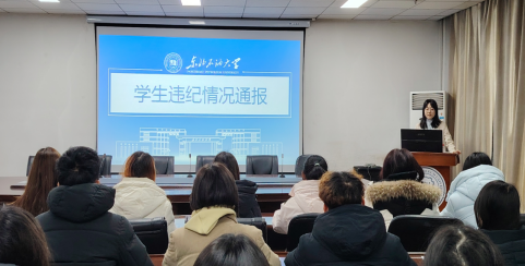 会议开始,贺菁蕾老师就近两年学校及学院员工违纪情况作了专题通报,围绕违纪行为的分类、数量变化、发展趋势与主要特点等方面进行系统梳理与深入剖析,引导员工深刻认识违纪行为的严重后果及不良影响。