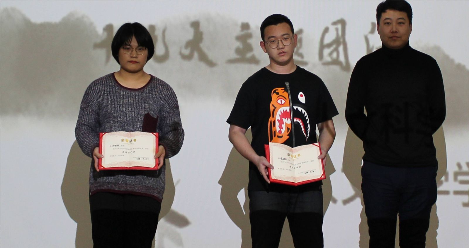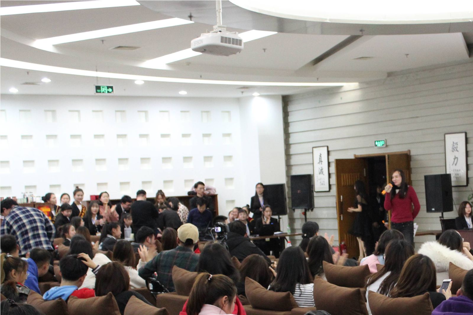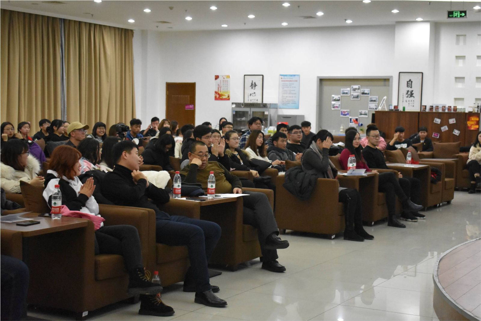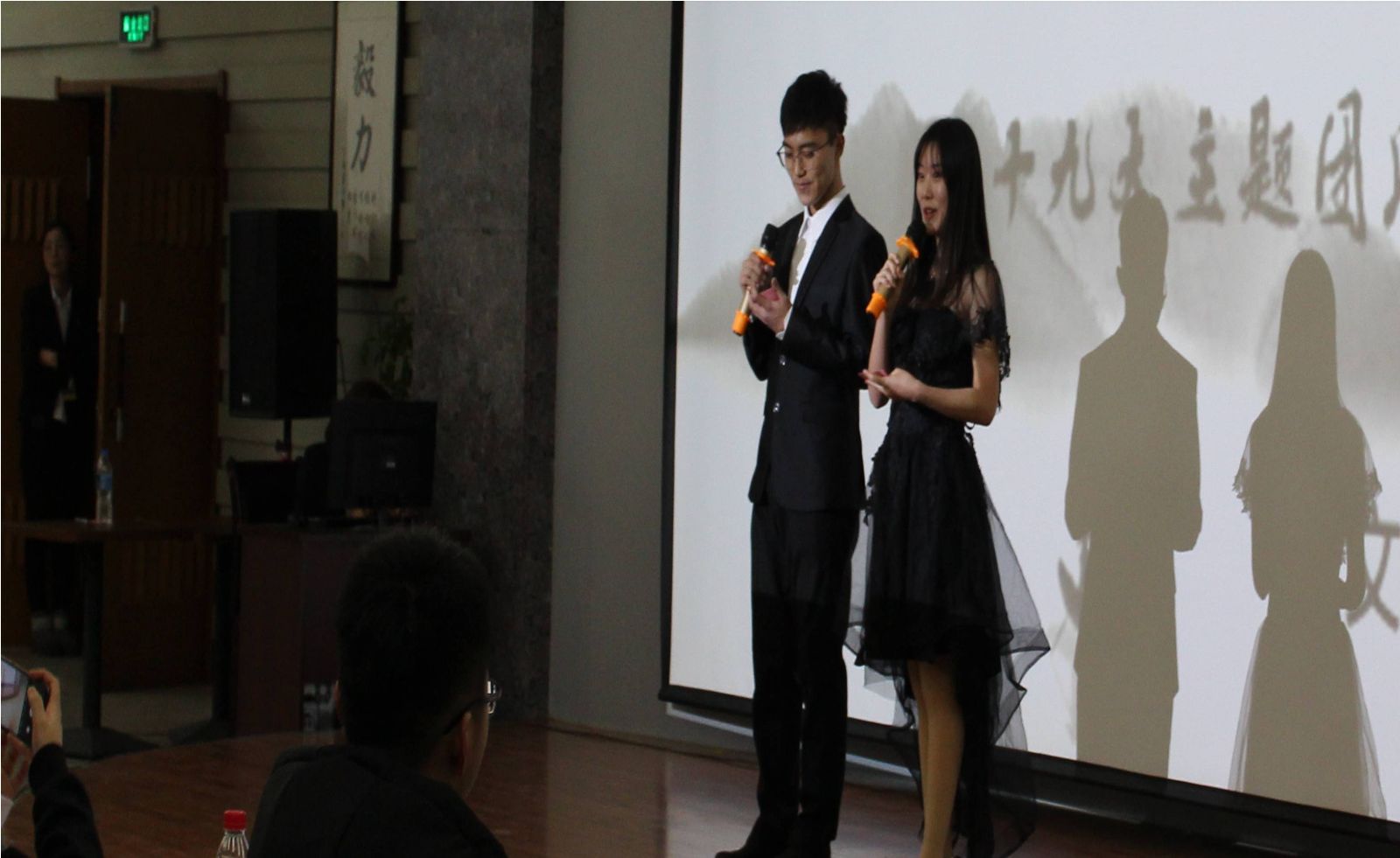 紧张有趣的节目表演完毕,随后,部分班级的团支书进行了PPT演讲。不同的班级,不同的风格,幽默搞怪,真情流露,一股暖流在会场涌动。一帧帧仔细挑选的照片,一个个精心剪辑的视频,记录下了一次次的相遇与感动,展示了大一新生从开学到现在的心路历程,见证了同学们的成长和进步。