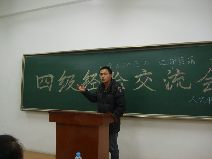 会上,大三年级在英语四级考试中取得优异成绩的几位同学分别将各自在准备四级考试,以及应试过程中的学习经验与心得介绍给即将迎接四级考试的大二同学和做准备的大一同学。并耐心细致地解答了低年级同学对学习外语的各种疑问。