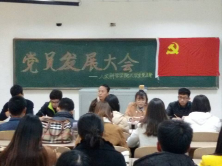 紧接着,5名发展对象依次宣读入党志愿书和背诵入党誓词,讲述自己的入党动机、入党历程和对党的理解认识,同时结合自己的实际情况表达了自己加入中国共产党的决心和强烈愿望。在发展对象讲述完毕之后,作为入党介绍人的正式党员和其他党员发表了对发展对象的意见。在最终的投票表决阶段,各发展对象都顺利通过了现场正式党员全数的投票。然后支部预备党员表明决心坚决服从组织,继续努力,全心全意为人民服务。最后,党总支部书记刘超老师对预备党员提出几点要求,要有积极的模范带头作用,联系同学,正确处理个人利益与集体利益的关系,最重要的是端正入党动机。并把入党誓词刻在心中,作为对党对人民一辈子的誓言!