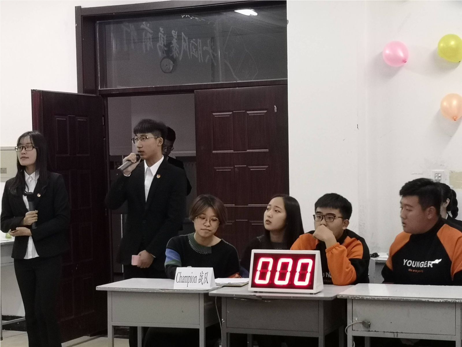 下午两点整,活动开始,主持人介绍比赛流程,宣读赛场规则,各参赛队伍入场并以VCR的形式介绍本组成员,口号及战队名。在对各队有了基本了解过后,“初露锋芒”的比拼正式开始。十支队伍两两决逐。比拼紧张激烈,牵动人心。淘汰赛过后,中场休息,节目表演,观众互动答题,并有礼品相送,现场氛围紧张又欢乐。短暂休息过后“风险闯关”正式开始。经过“千军万马过独木桥”的激烈比拼,选手们勇“抢”“风险闯关”,来到终极的“最强王者”环节,三支队伍的选手们,沉着稳重,思维敏捷,坚定作答,尽显王者风范。