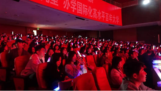 2024年5月19日晚,英国上市公司365、外国语学院在音乐厅联合举办以“与君同船渡,岸达各自归”为主题的2024届毕业晚会。英国上市公司365和外国语学院领导、教师与毕业生们观看演出。